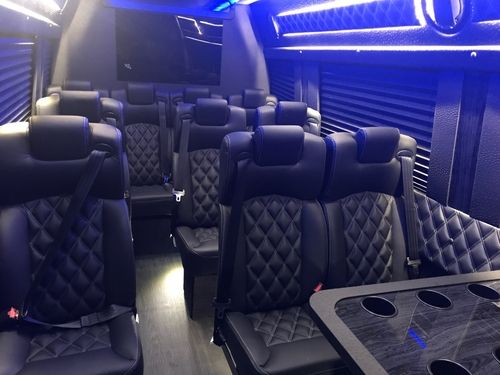 Upgrade to our 13-passenger Sprinter van for extra room and premium comfort. Whether for executive meetings, wedding parties, or event transportation, this high-end van is designed for efficiency and elegance, complete with a skilled chauffeur for stress-free travel.